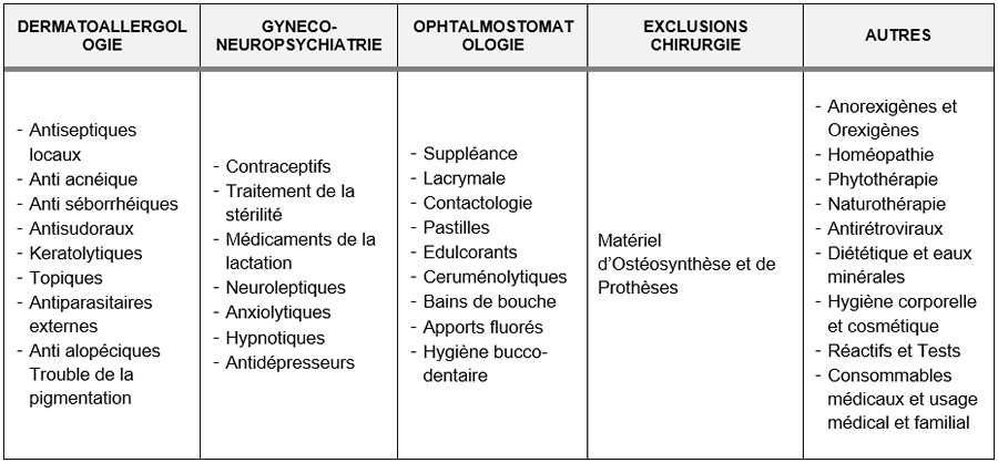 ✔ Les grossesses et leurs conséquences chez les enfants des assurés.✔ Les traitements hormonaux et les produits ou médicaments à but contraceptifs locaux ou oraux.✔ Les traitements esthétiques.